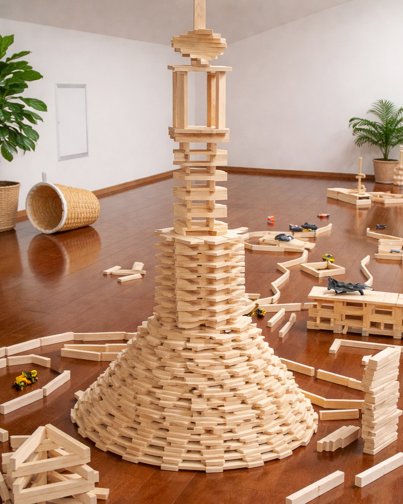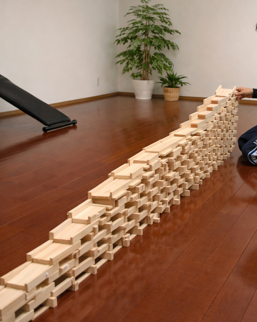 硬過ぎず、軟らか過ぎず子どもの積み木遊びには最適の素材です。