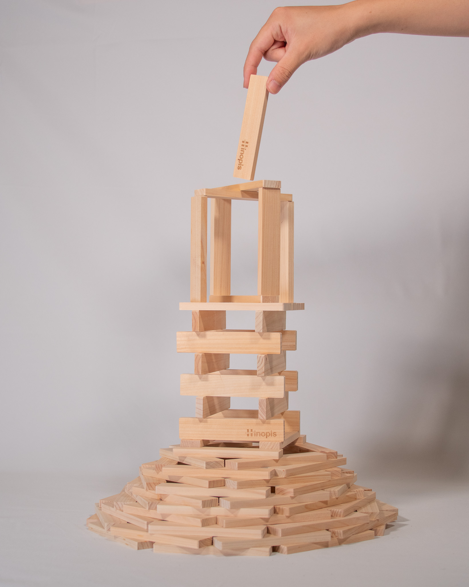 国産ヒノキ100%の天然素材無垢で作られた積み木「Hinopis(ヒノピス)」300ピース / 木箱付き です。