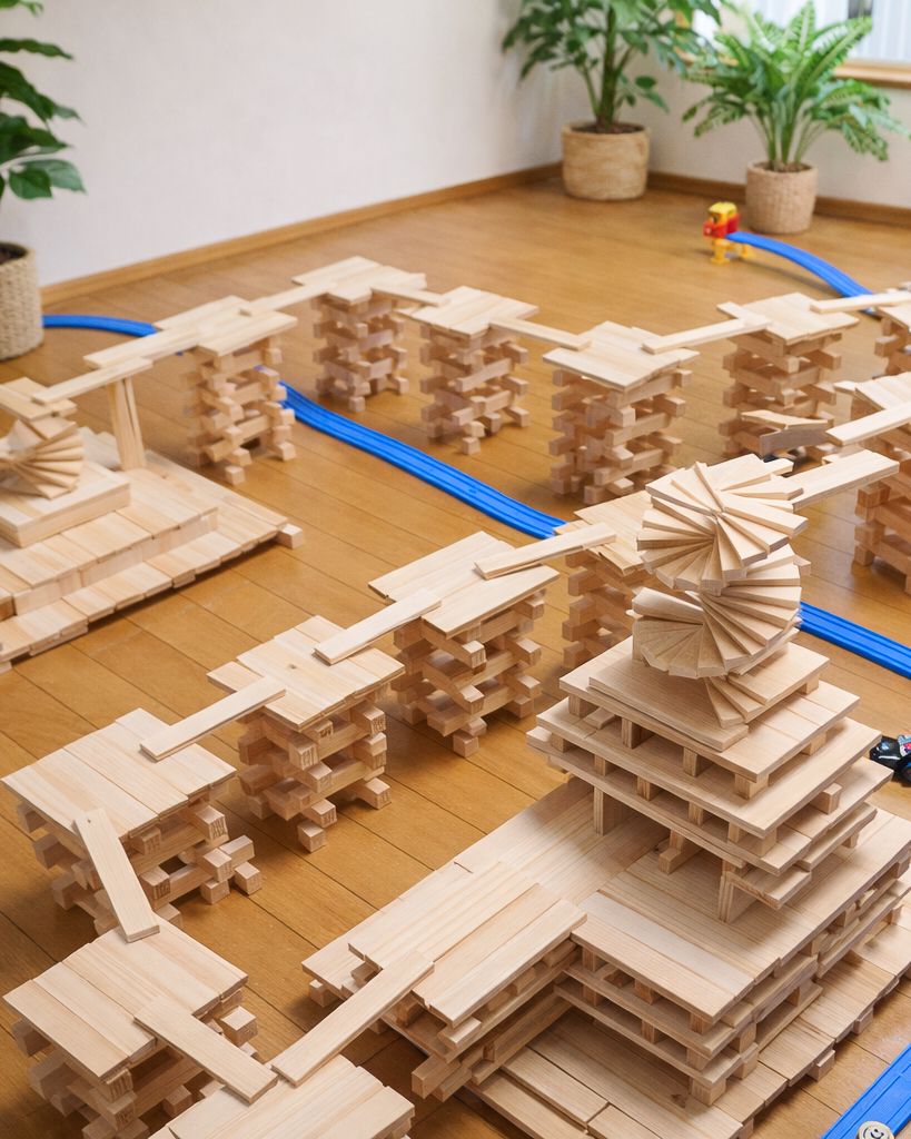 硬過ぎず、軟らか過ぎず子どもの積み木遊びには最適の素材です。